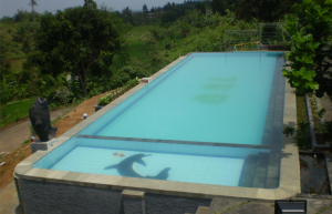 Kali ini kami akan menjelaskan beberapa tips cara membuat kolam renang di lahan berkontur atau tebing dari studi kasus beberapa proyek kami di wilayah Cisarua Bogor, ini di sebabkan karena tidak ada lokasi tanah yang rata dan beberapa alasan yang lain mungkin point area yang bagus dan strategis memang di lahan yang berkontur (miring). Salah satu keuntungan perencanaan kolam renang yang cocok untuk area berkontur seper ti ini baiknya berupa infinity pool yang sekarang ini sedang hits di bicarakan, yaitu kolam renang tanpa batas yang posisinya memberi kesan bahwa kolam itu menyatu dengan lautan atau lanskap sekitarnya. Memang dengan lokasi lahan berkontur akan memerlukan biaya yang tidak sedikit tentunya. Hal ini disebabkan karena lahan berkontur memerlukan perlakuan khusus dalam pengolahannya. Karena harus ada tambahan pekerjaan pembuatan dinding penahan tanah ( DPT ) di sekitar kolam renang untuk mencegah terjadinya pergerakan tanah atau erosi antara lain pasangan batu kali,bronjong,retaining wall ( dinding beton ) atau bisa juga tanaman perdu, yang tentunya akan memerlukan tambahan biaya yang cukup besar. Dan lebih lanjut kami akan berbagi bagaimana membangun kolam renang di lahan berkontur serta tahapan yang perlu dilakukan untuk memaksimalkan potensi lahan terutama yang berkaitan dengan perencanaan secara keselurhan .